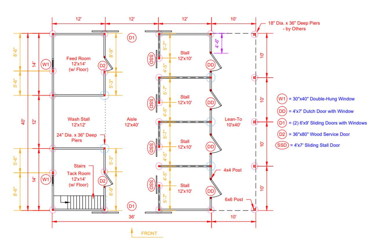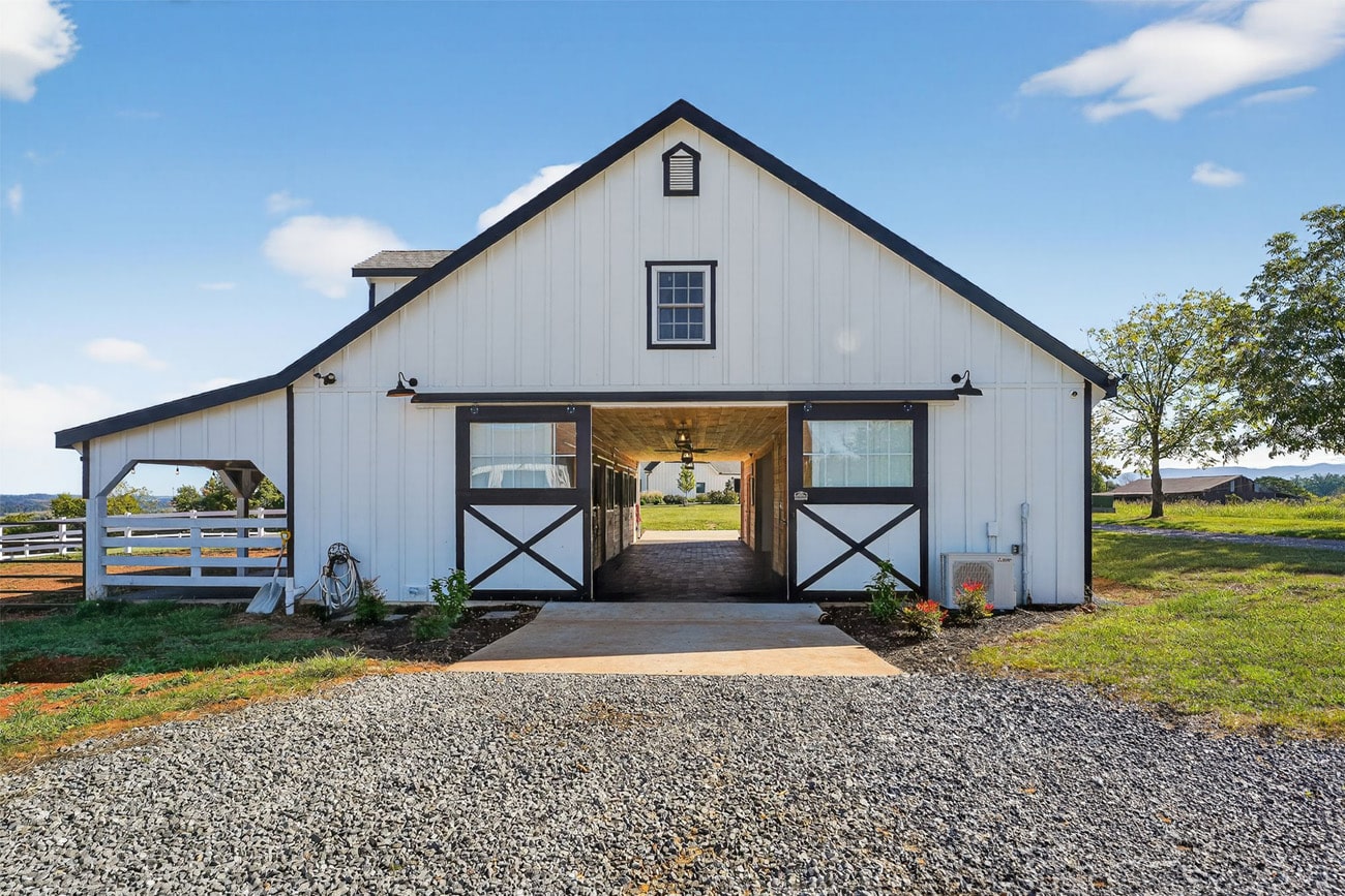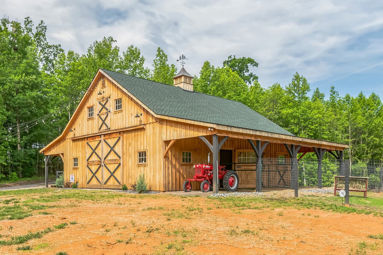 Yes. You choose stall sizes, tack/feed rooms, wash bays, overhangs, dormers, windows, and door styles. Additional modules can be added later to expand your barn. Timber frame barns offer even more custom touches like curved arches and specialty trim.
