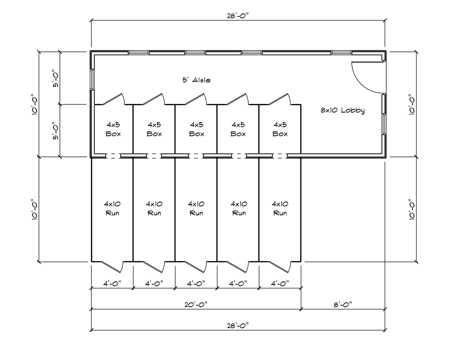 If you are looking for a durable, easy-to-clean dog kennel that truly does it all—take a look at this 10×28 Commercial Dog Kennel. Perfect for large packs of dogs, this kennel offers both indoor and outdoor living areas as well as a 5’ wide feeding alley and walkway.