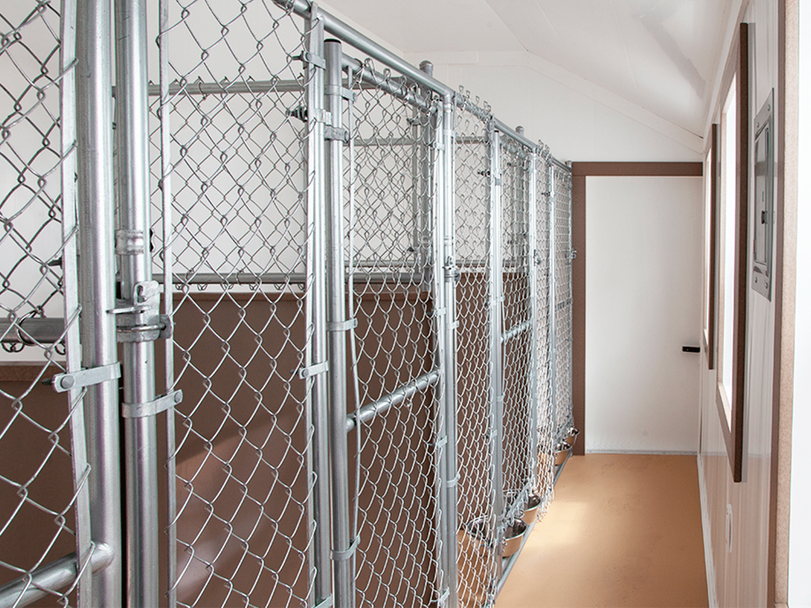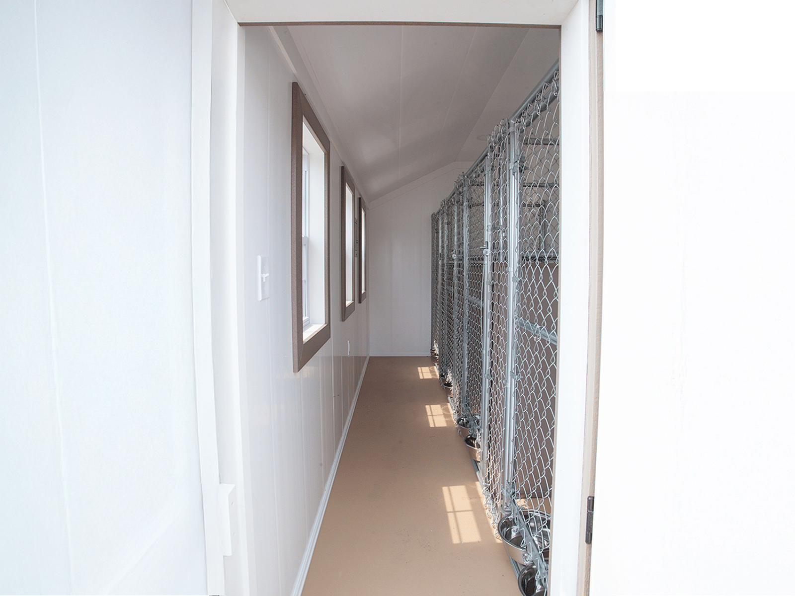 This structure also boasts a separate feeding room, which makes it easy to keep this commercial kennel clean and sanitary. The feeding room also provides extra space for storage.