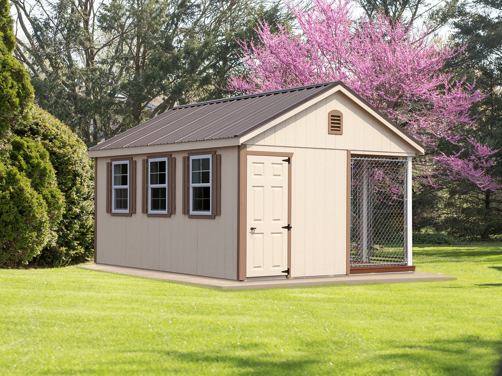 This beautiful tan and white kennel is a must-have for individuals who need a little more space to house multiple dogs. This commercial-grade heavy-duty outdoor dog kennel is made of ultra-durable materials, similar to those you would find in your own home, and it is organized in a way to maximize space and functionality.