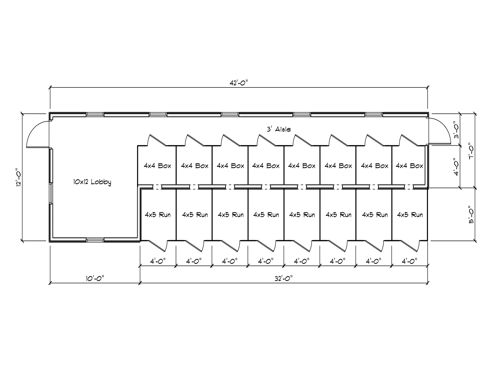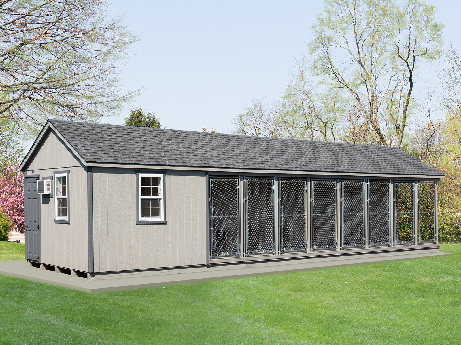 When you need to house lots of dogs at once but want to make sure each pooch has their own place to call home, there is no better option than this eight-dog kennel. Put this custom-designed kennel on your property as-is or upgrade it to include our comprehensive electrical system and bring even more features to your new outdoor structure!