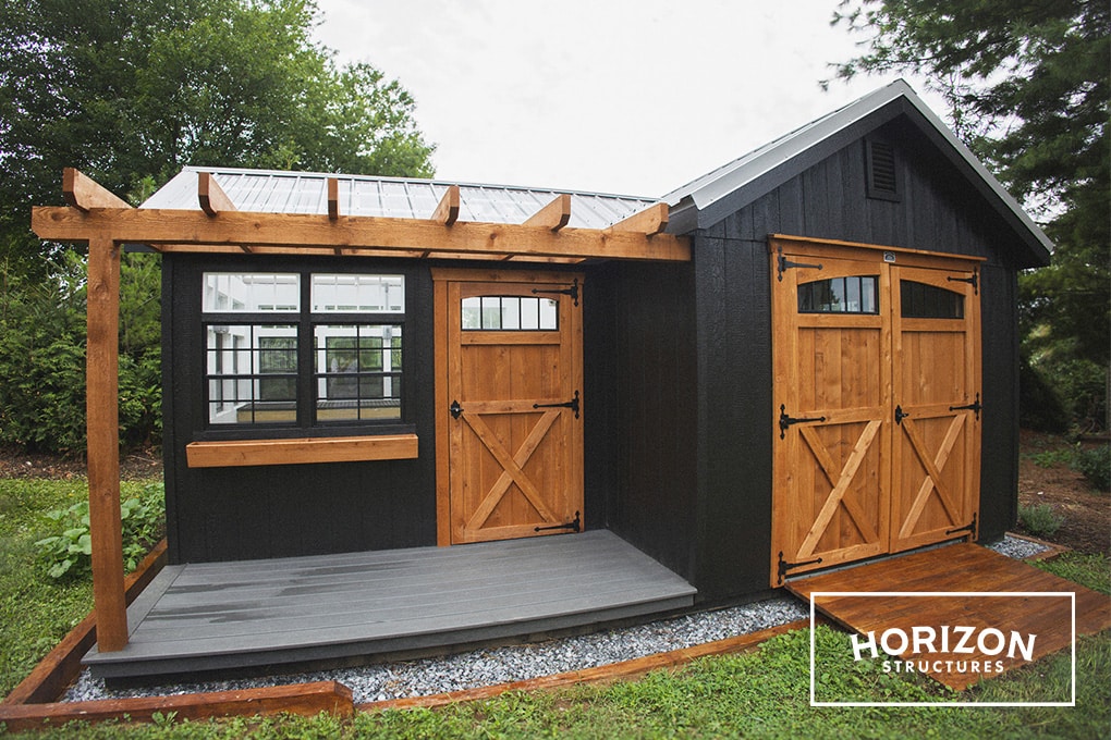 This greenhouse/shed combo brings real function and craftsmanship together including a roomy storage area, along with a bright greenhouse area.