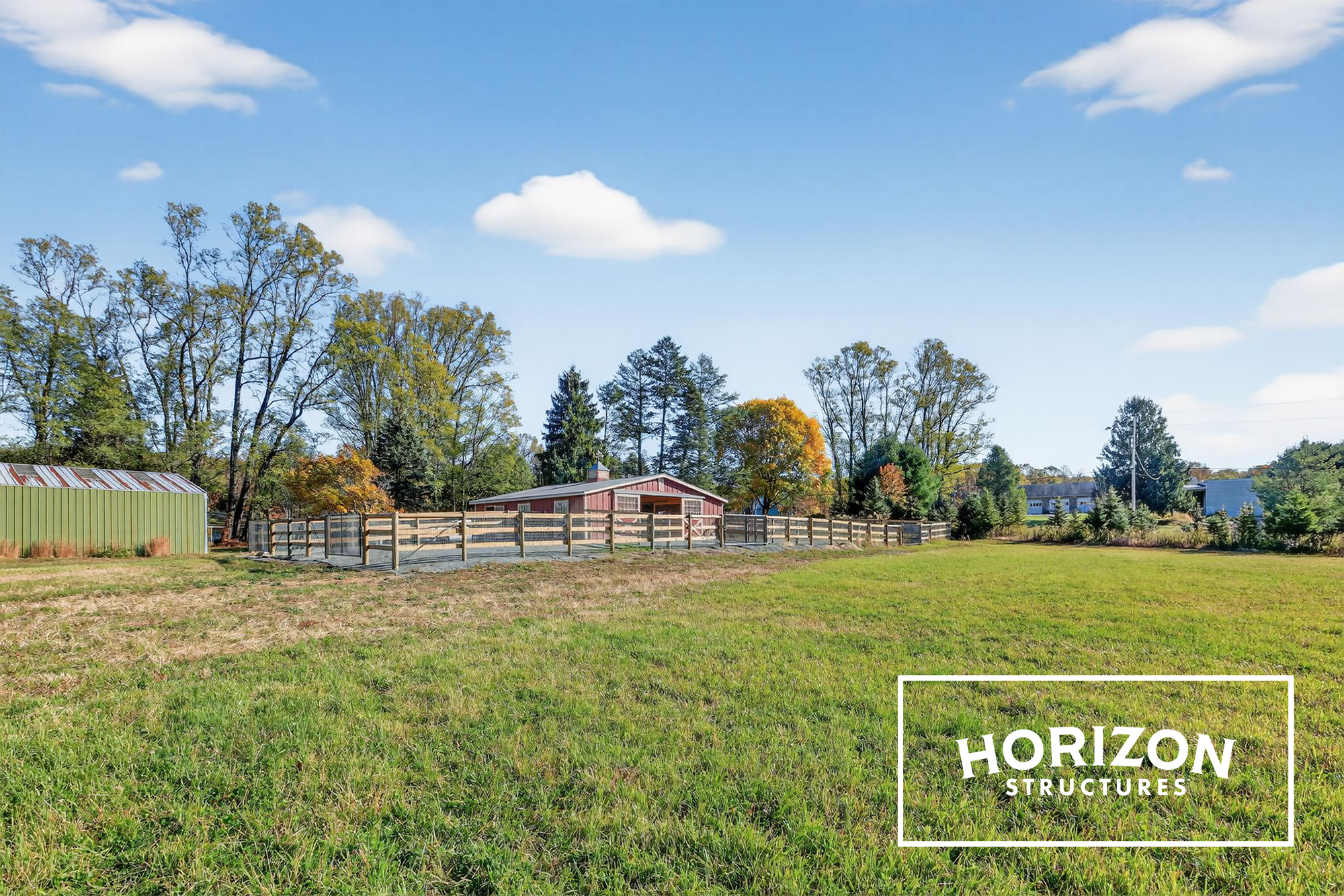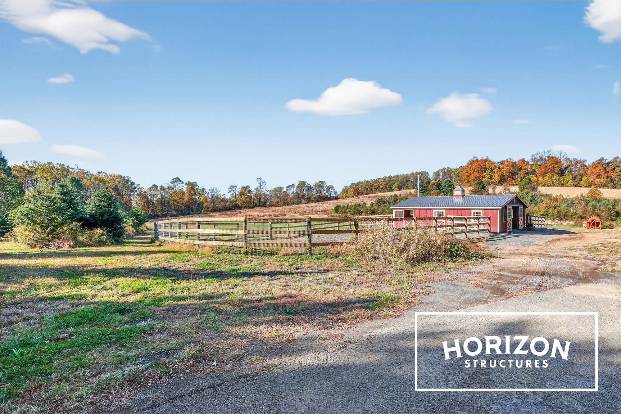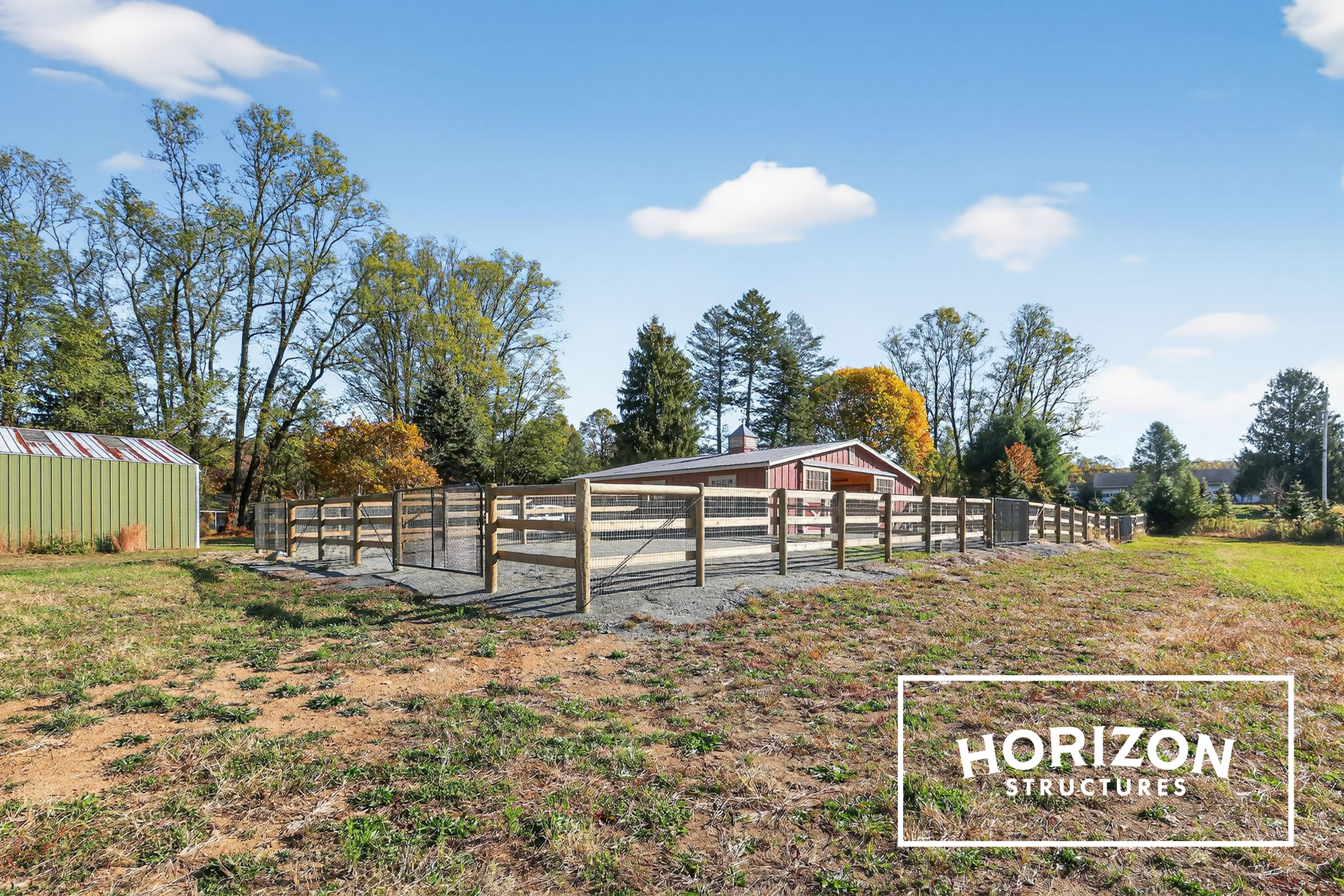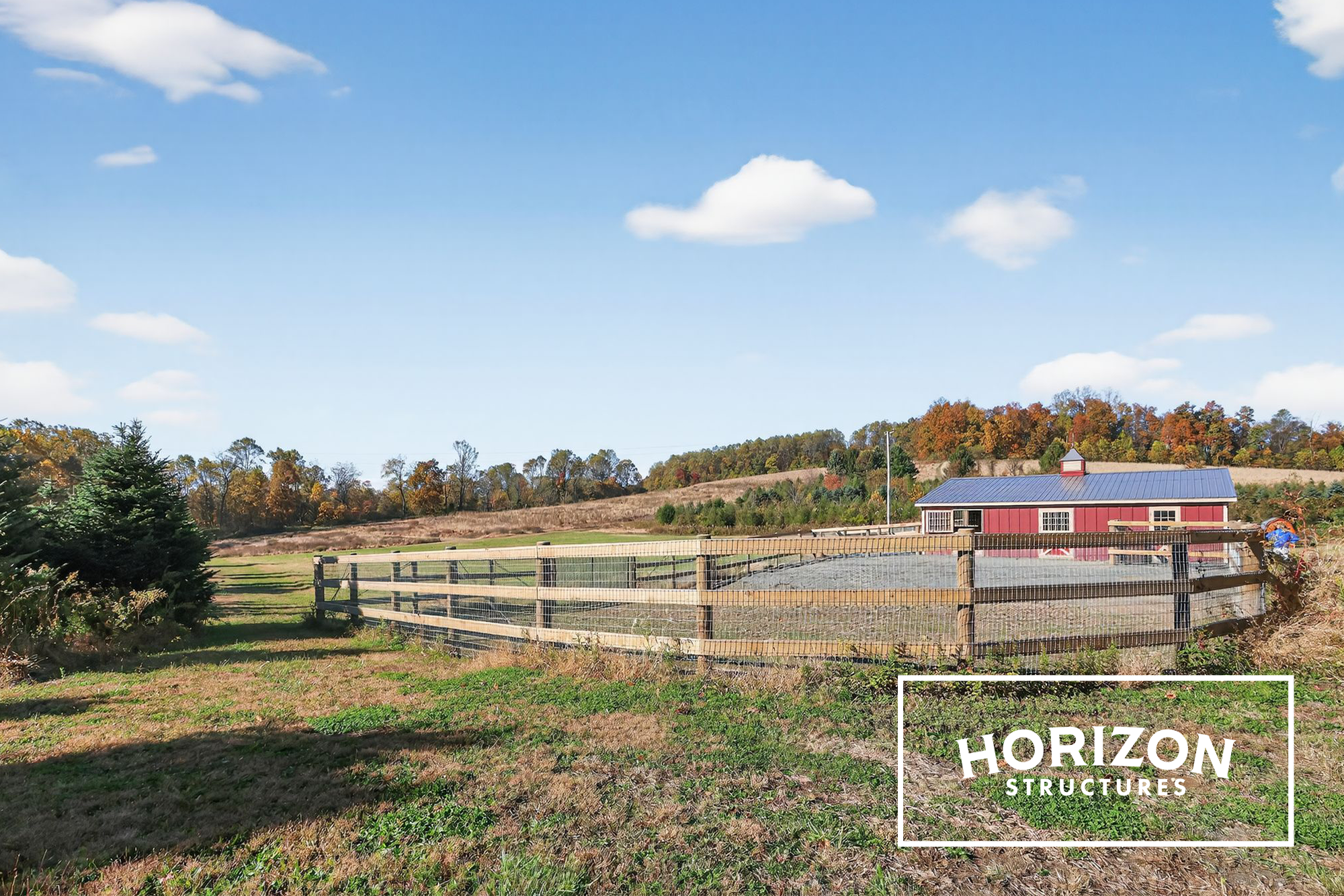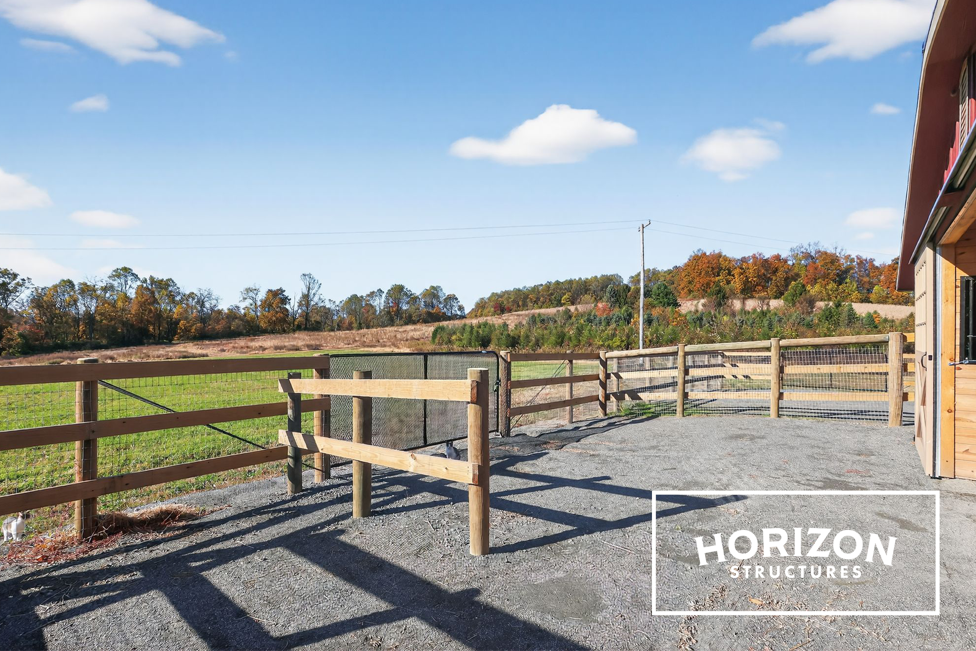 This low-profile barn in Barto, Pennsylvania, is a perfect blend of classic style and modern materials. The bold red LP SmartSide board-and-batten siding gives it a durable, clean finish that stands up to the elements while maintaining timeless barn character. Its compact, efficient design makes it an ideal setup for small farms or private equestrian properties.