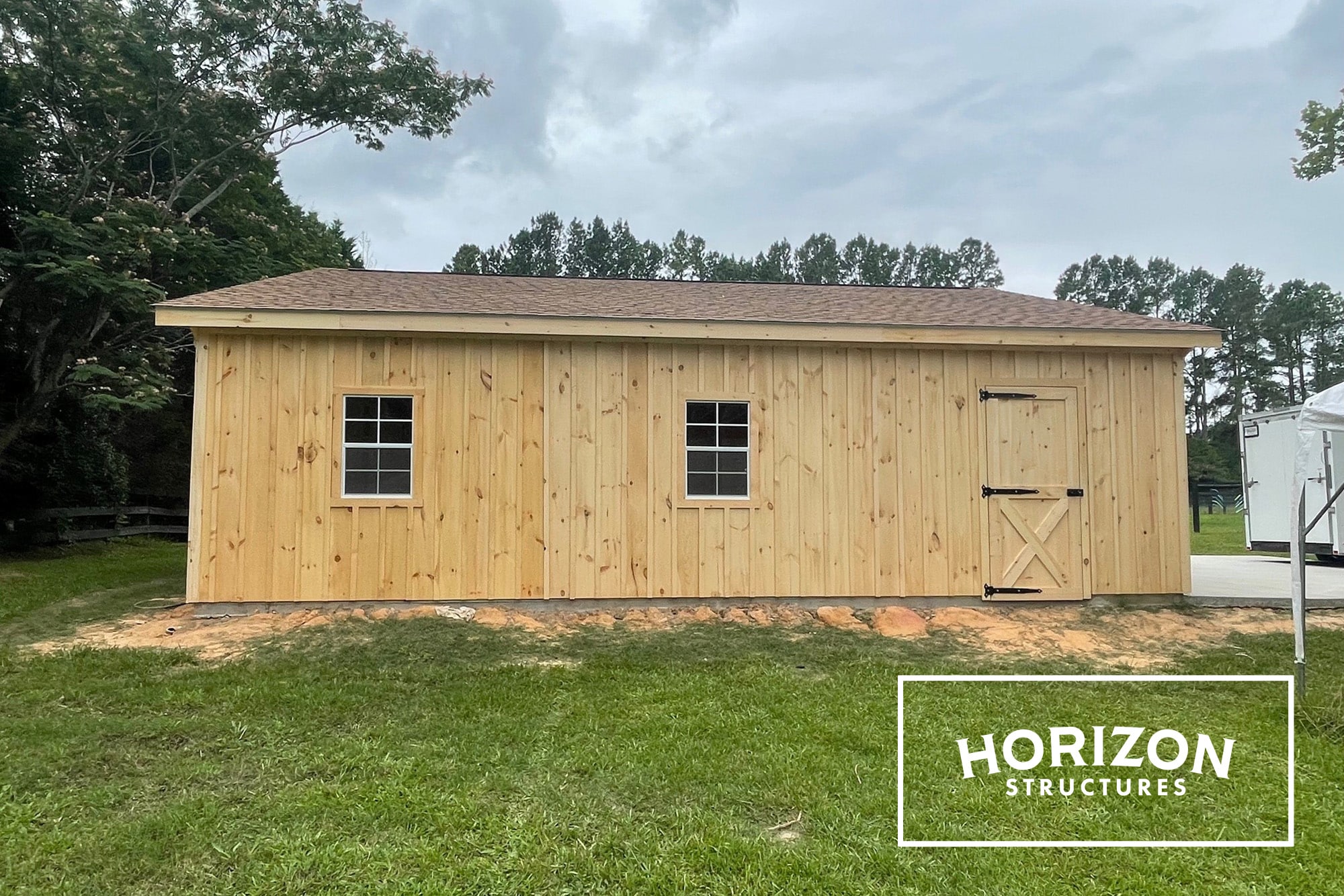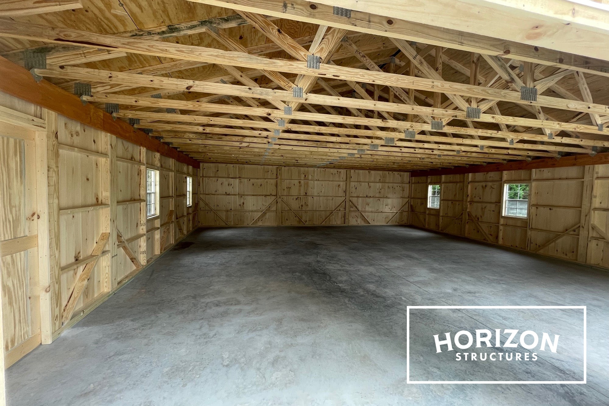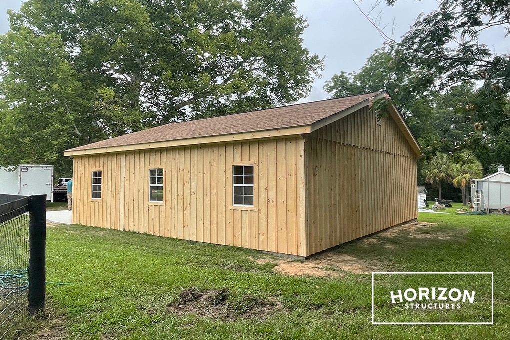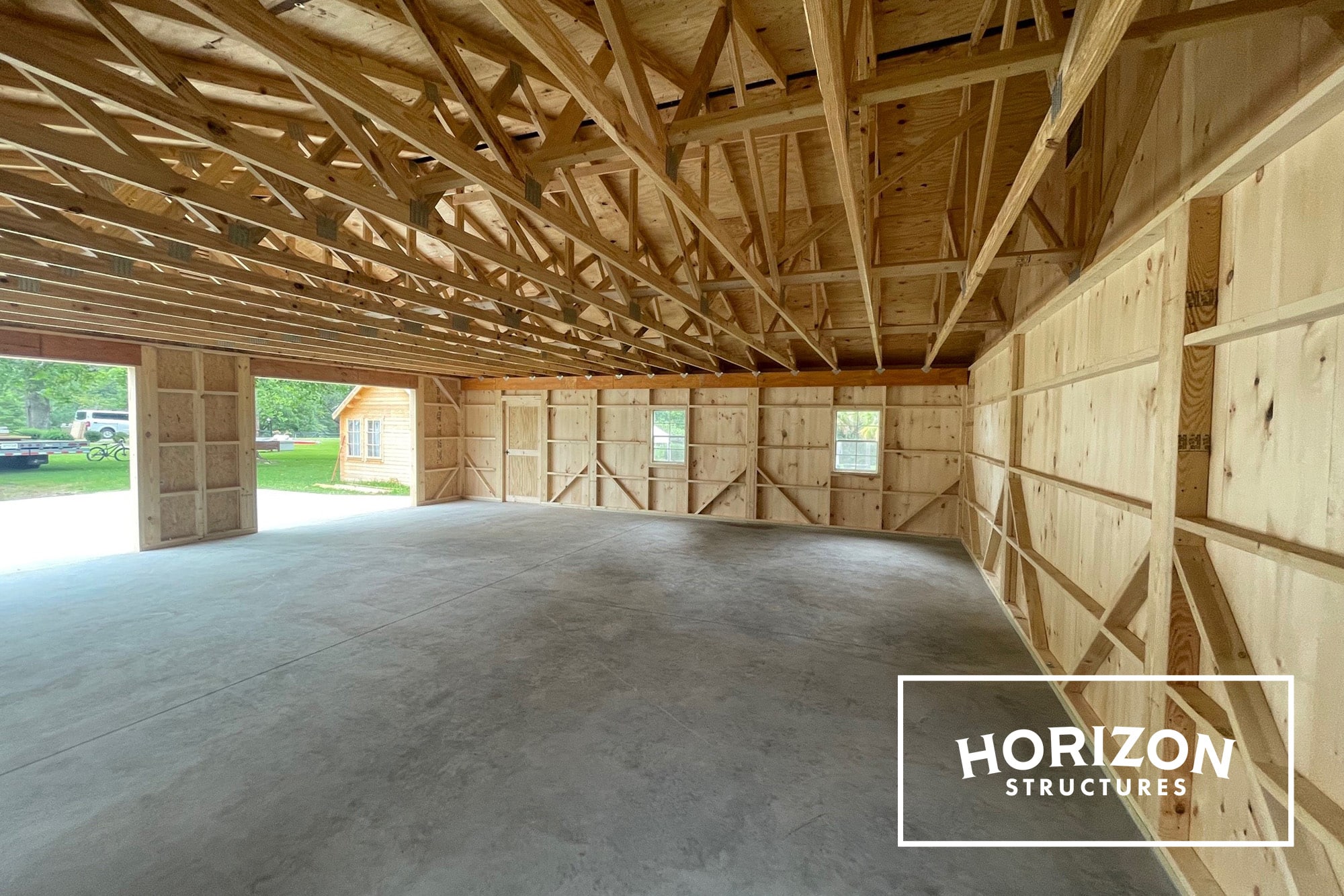 This simple 30’ x 30’ two-car garage in Aiken, South Carolina, was built to provide dependable storage and everyday functionality for a residential property. Featuring natural wood siding and a clean gable roofline, the structure has a straightforward look that fits well with the surrounding setting. The wide door openings allow for easy vehicle access, while the solid concrete floor and durable framing create a space that’s ready for long-term use.