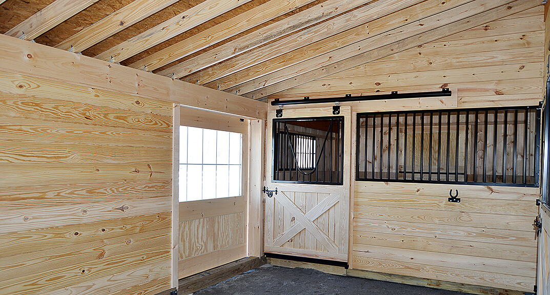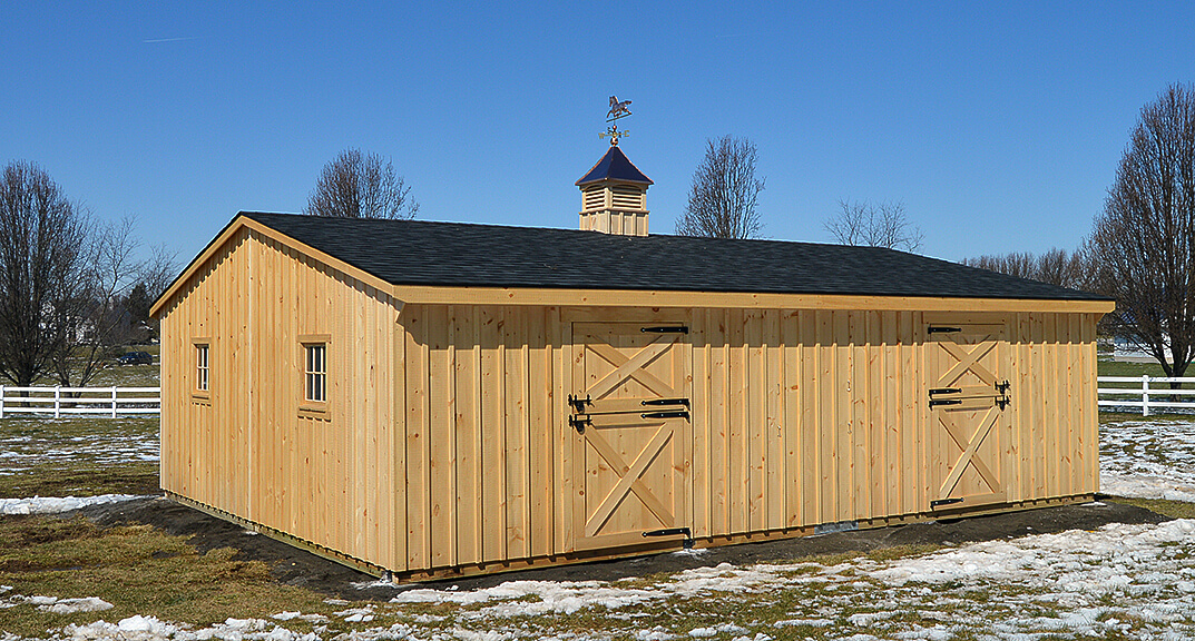 24×30 Double-Wide Barn. Includes: (2) 12×15 stalls, 10×12 stall, 20×12 aisle