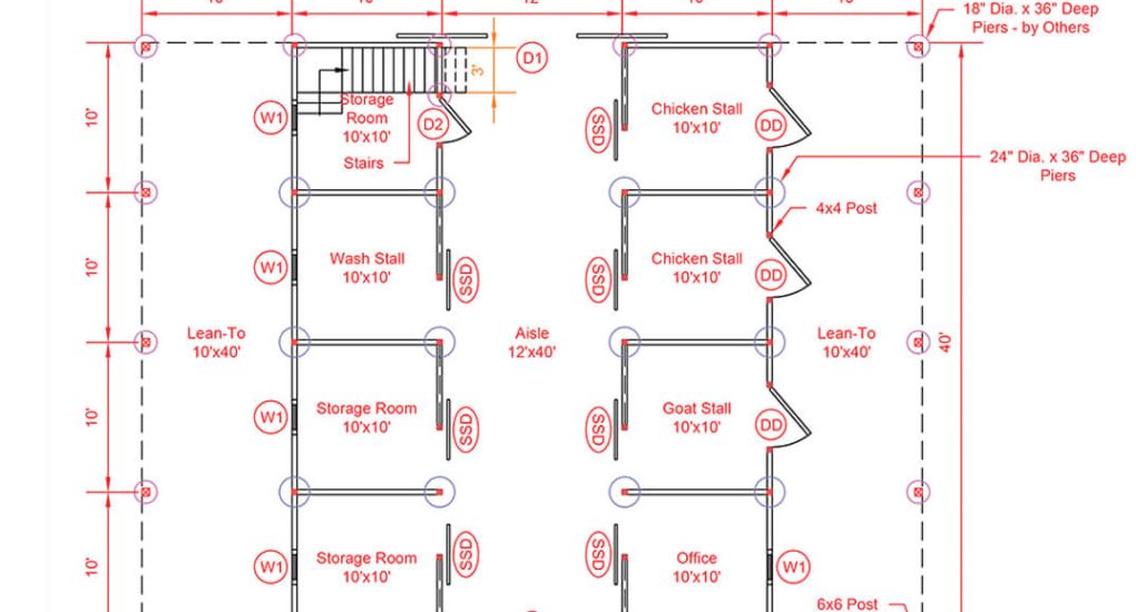 32×40 High Profile barn includes (3) 10×10 storage rooms, 10×10 wash stall, 10×10 office, 10×10 goat stall, (2) 10×10 chicken areas, (2) 10′ overhangs, upgrade stall windows to Dutch doors with windows and grills and more…