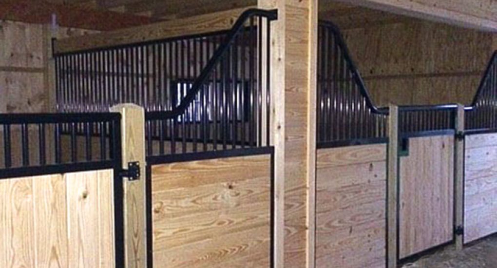 36×28 High Profile Barn includes metal roof with 10′ overhang, (2) 12×14 stalls with (customer supplied) custom Euro stall fronts and partitions, 12×14 tack/feed room, loft