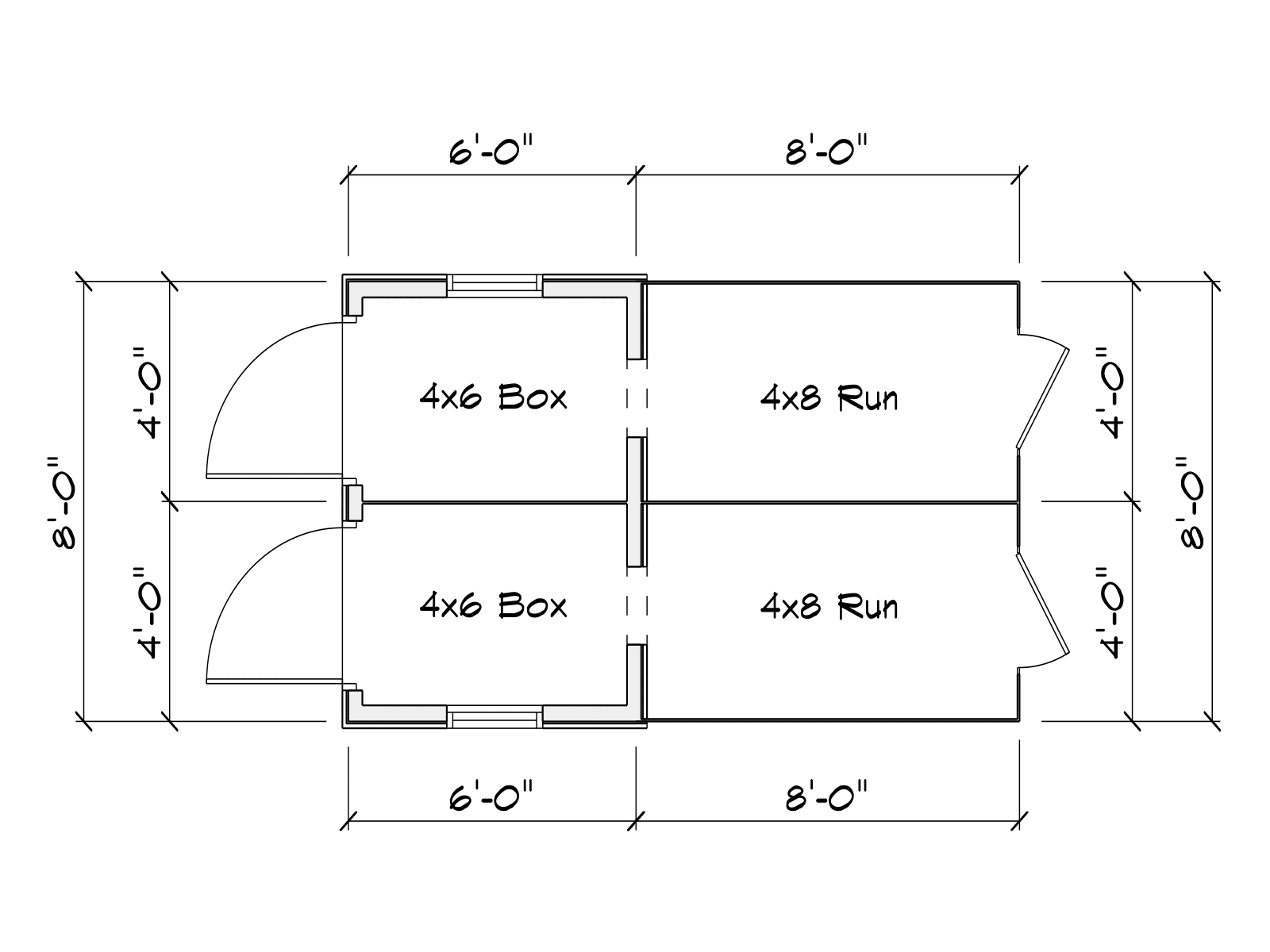 This kennel can also be outfitted with our optional 4-foot-high solid panels (solid panel below/chain-link above). Add this for additional separation of your dogs to both the interior boxes and the exterior run.