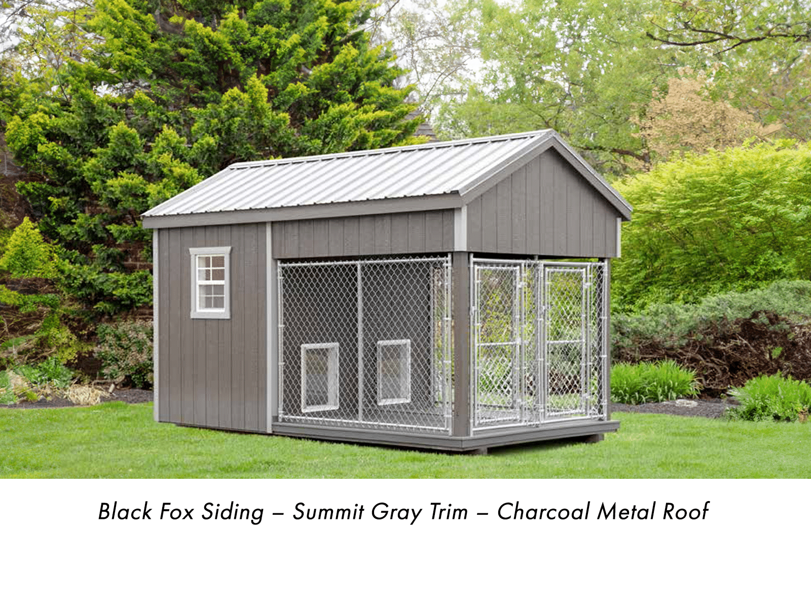 Want to know what else comes with our standard dog kennels? Here’s what else you can expect: Interior dog box, single pane 18”x23” screened exterior window, standard size fiberglass door, covered outdoor run, and non-toxic, easy-clean flooring.