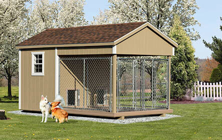 There is a lot to love about this Horizon Structures 8×14 kennel. With a layout designed for two dogs, this larger kennel will provide the perfect place for your pets to call “home.” Each insulated box has its own keyed fiberglass “man door” and its own screened window.